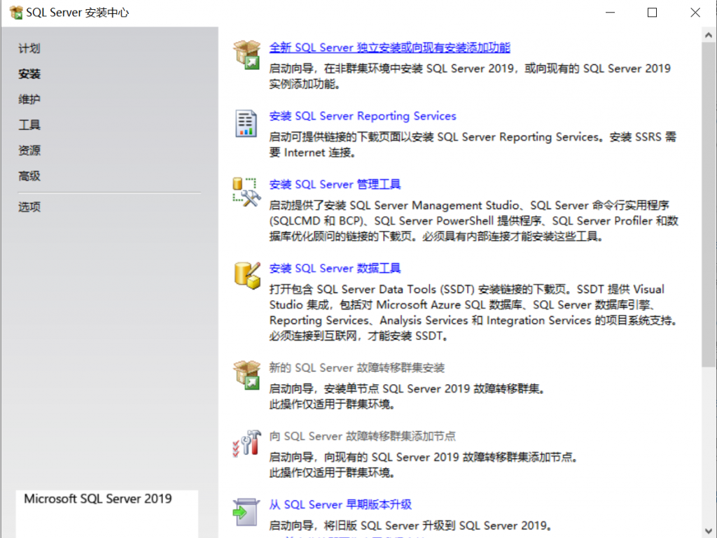还是最开始的安装界面,点击【安装SQL Server管理工具】,会自动跳转到一个链接,按提示来下载管理工具