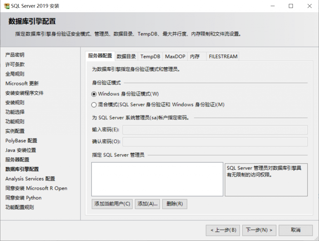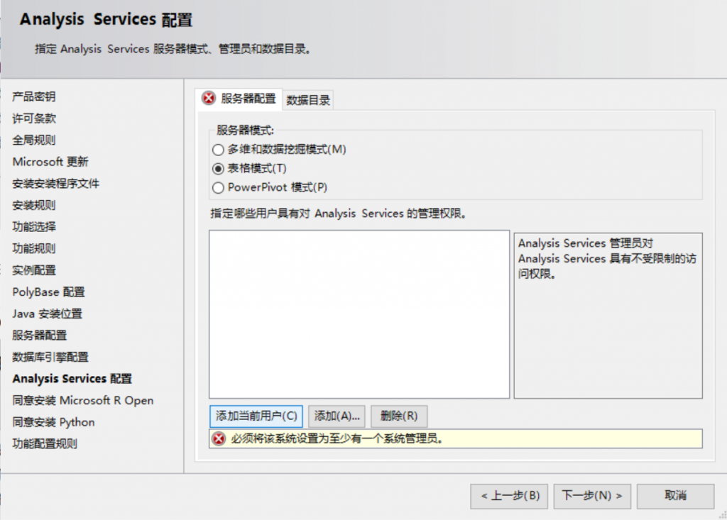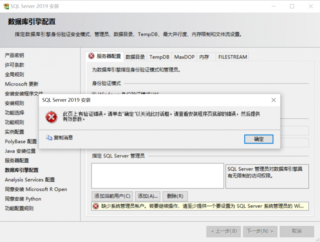 这里要必须要指定一个SQL Server管理员,否则会报错如下: