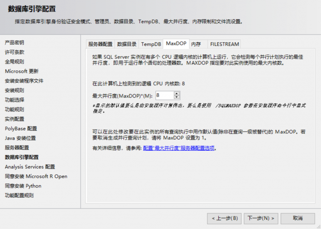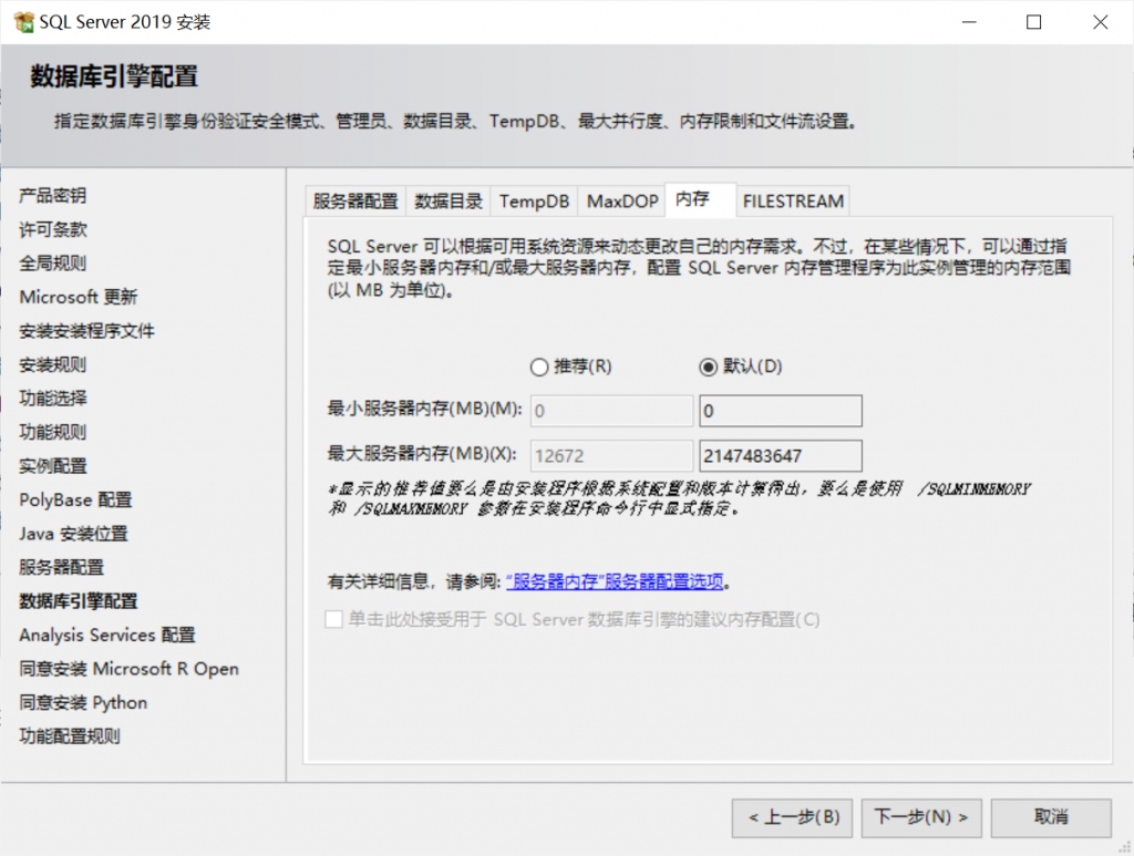 * 内存至少必须有 2GB RAM,才能在 Data Quality Services (DQS) 中安装数据质量服务器组件。此要求不同于 SQL Server 的最低内存要求。 有关安装 DQS 的信息,请参阅 Install Data Quality Services。
