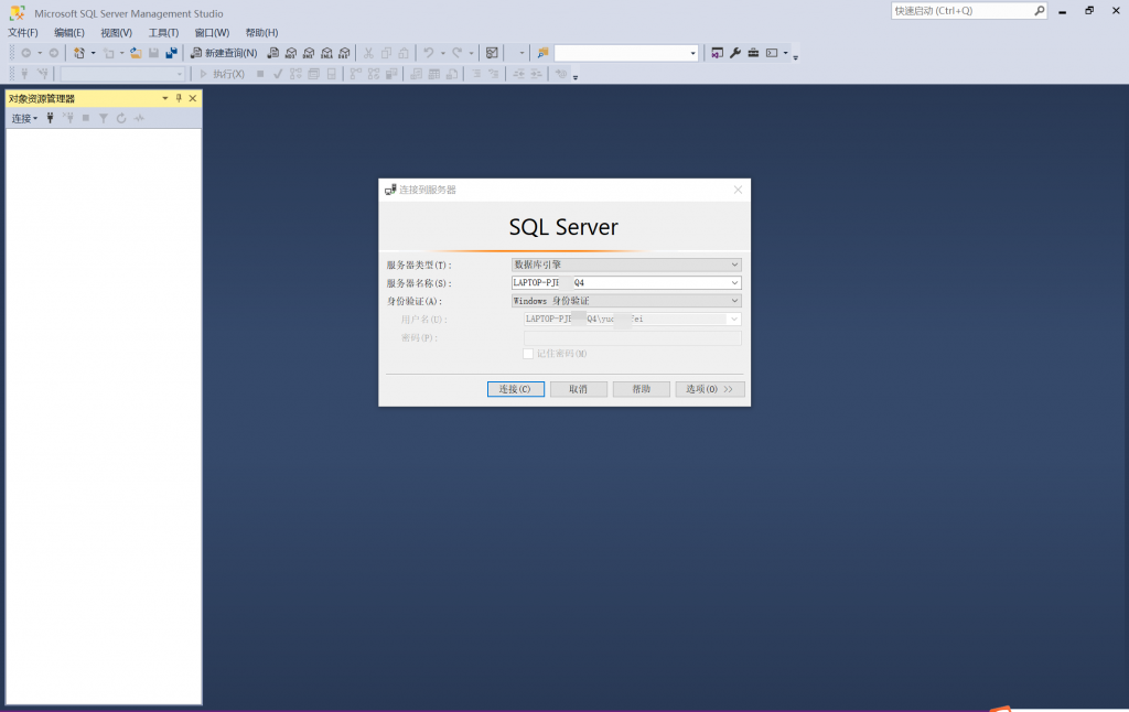 安装完成,启动SSMS,使用【Windos 身份验证】登录SQL Server数据库
